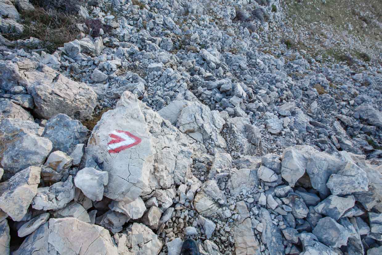 Staza je nevjerojatno dobro markirana i ako dobro gledate nemoguće se izgubiti. Markacije su svugdje dobro vidljive, cijelim “putem”. Put je pod navodnicima jer puta gotovo da i nema, goli kamen, stijene i netaknuta priroda.